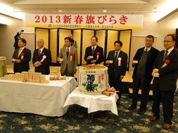 連帯労組近畿地方本部および各支部共催のもと、『2013新春旗びらき』が1月11日、大阪市北区中之島のホテルNCBにて開催した。第1部でご来賓に激励と連帯の言葉を頂いた後、第2部の歓談へと移り、各種催しを行った。